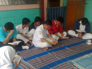 Pada saat mengaji semuanya baca bergiliran saling membaca satu ayat-satu ayat..
